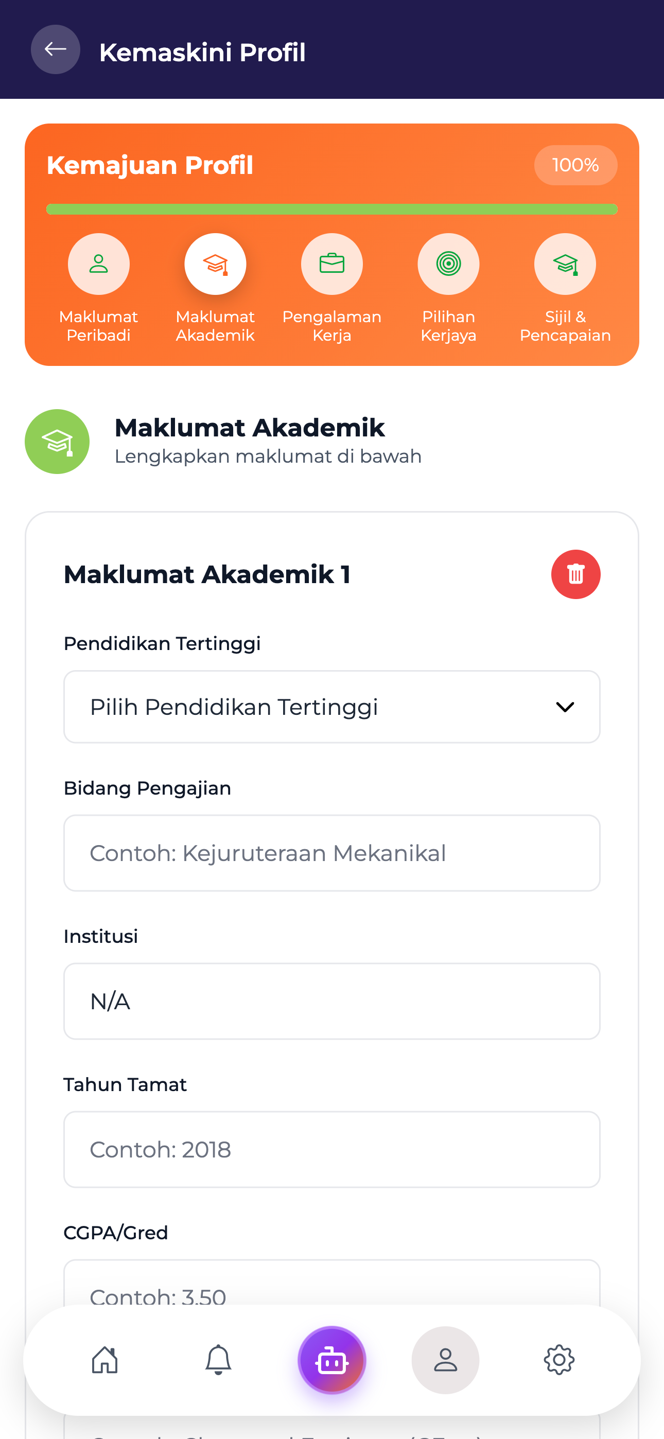 Pengguna boleh menambah lebih daripada satu rekod akademik jika perlu.