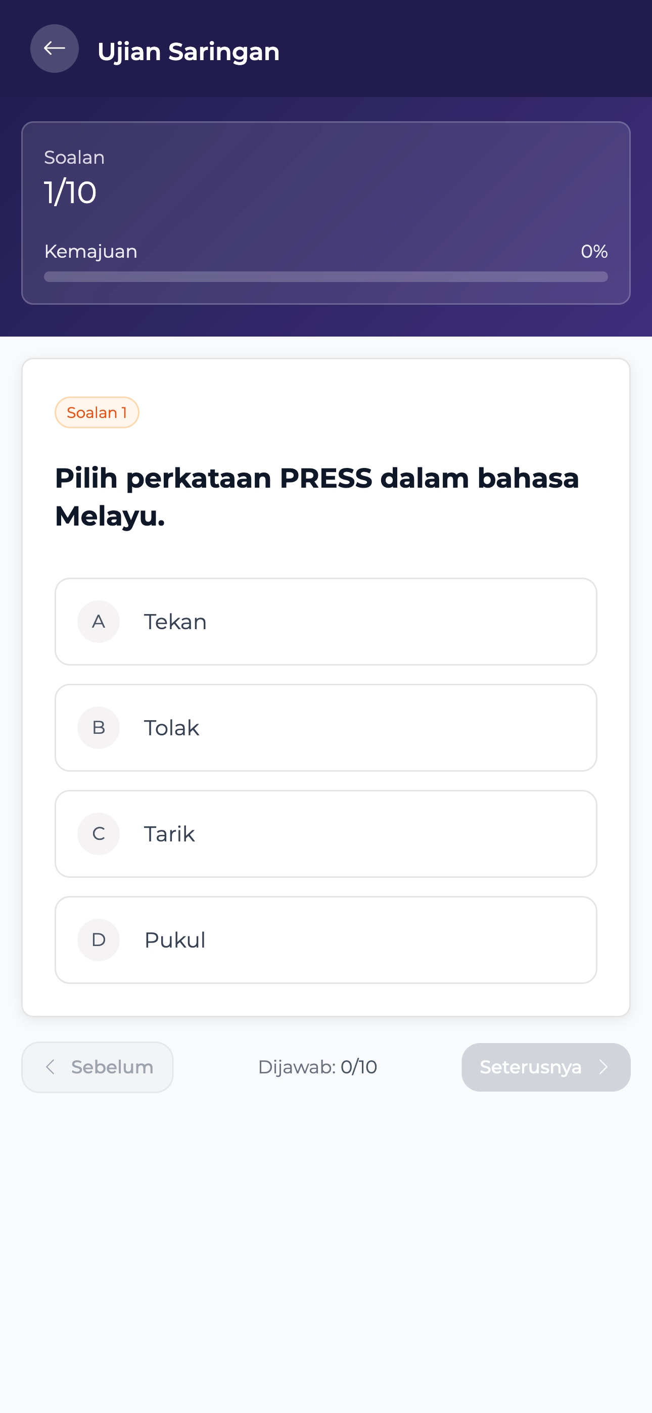 Ujian mengandungi 10 soalan