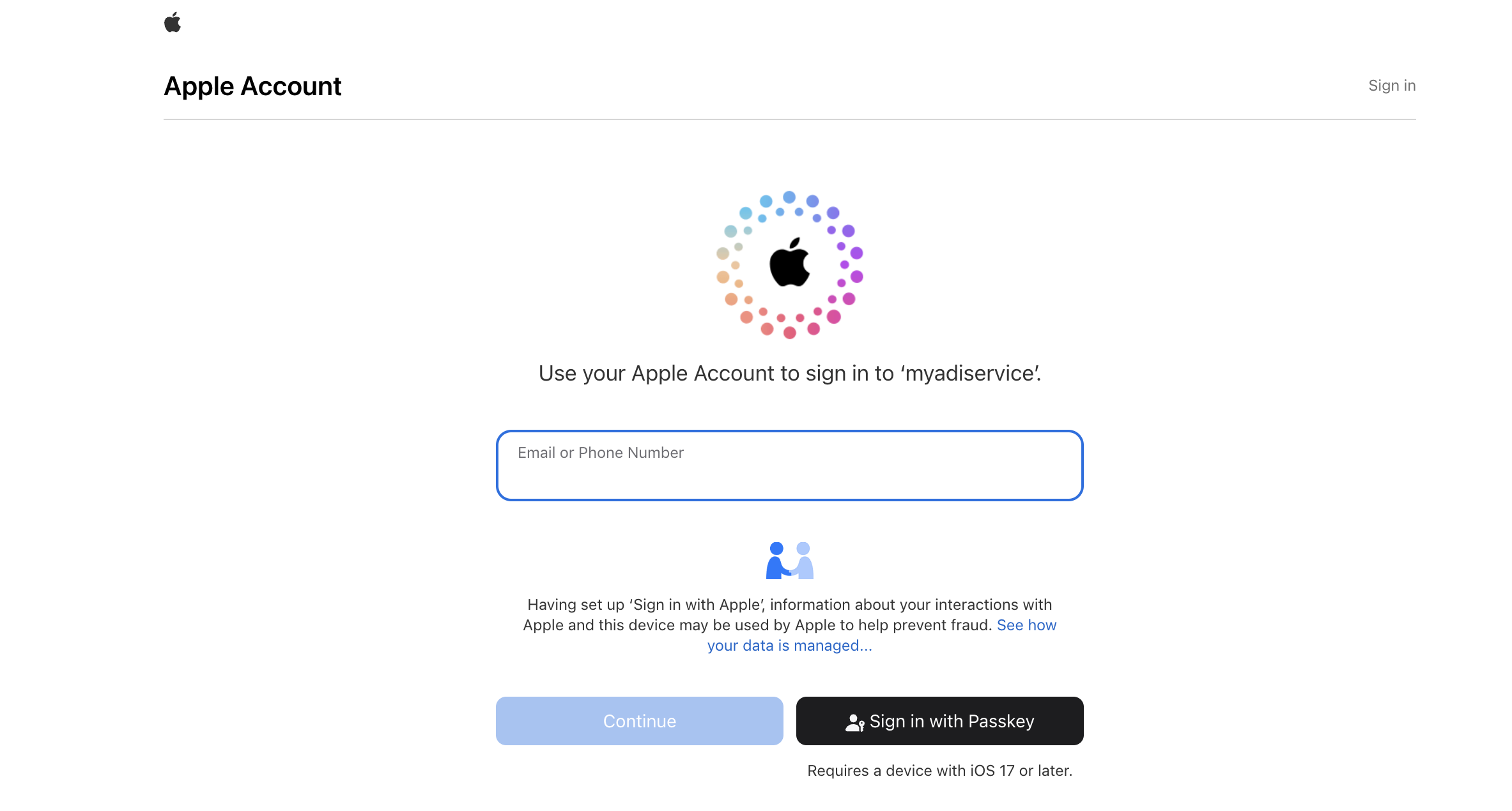 Jika ini kali pertama anda menggunakanApple Login, sistem akan tetap mencipta akaun ADI untuk anda.
