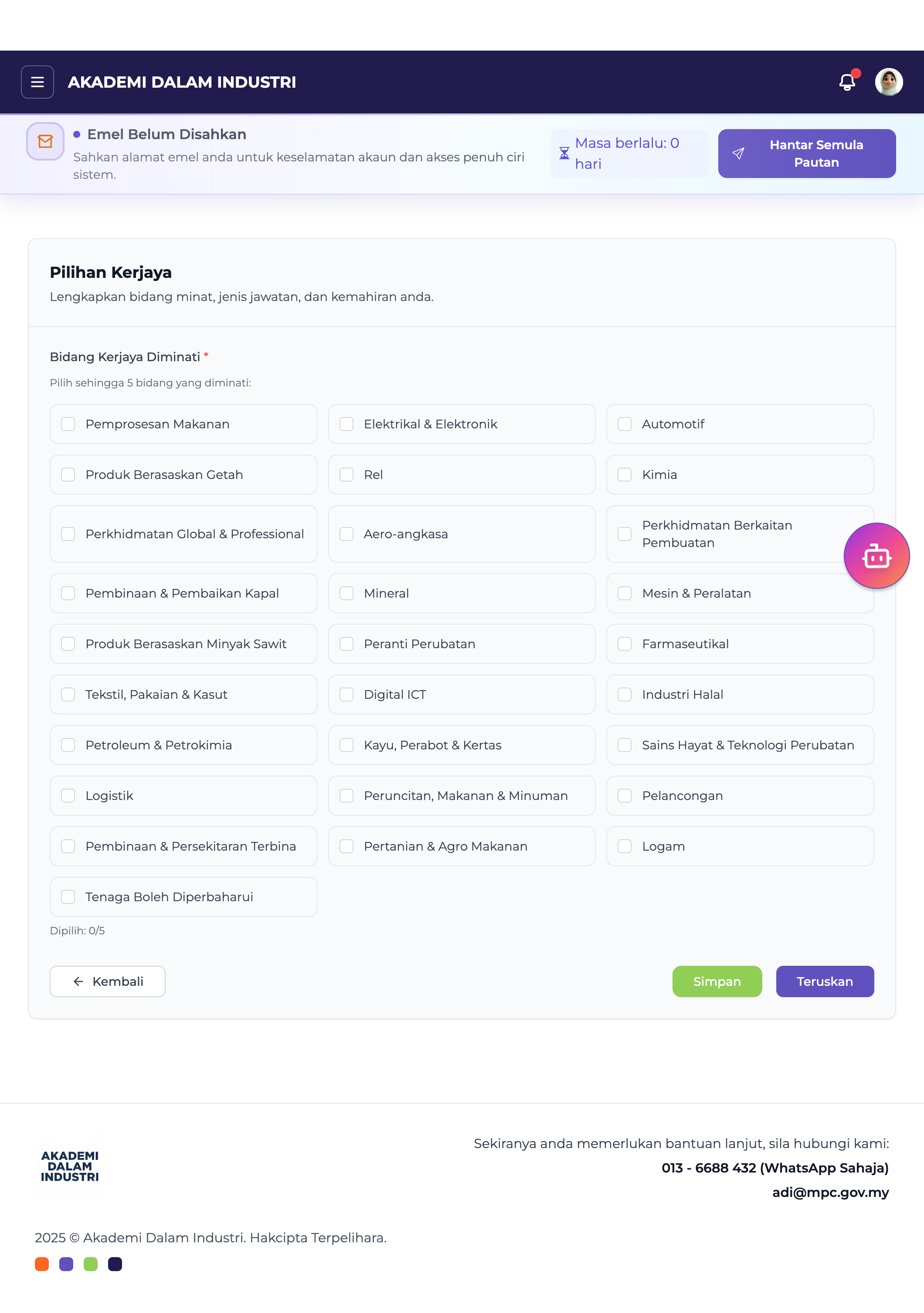 i. Anda boleh memilih sehingga 5 bidang yang paling sesuai dengan minat dan kemahiran anda.