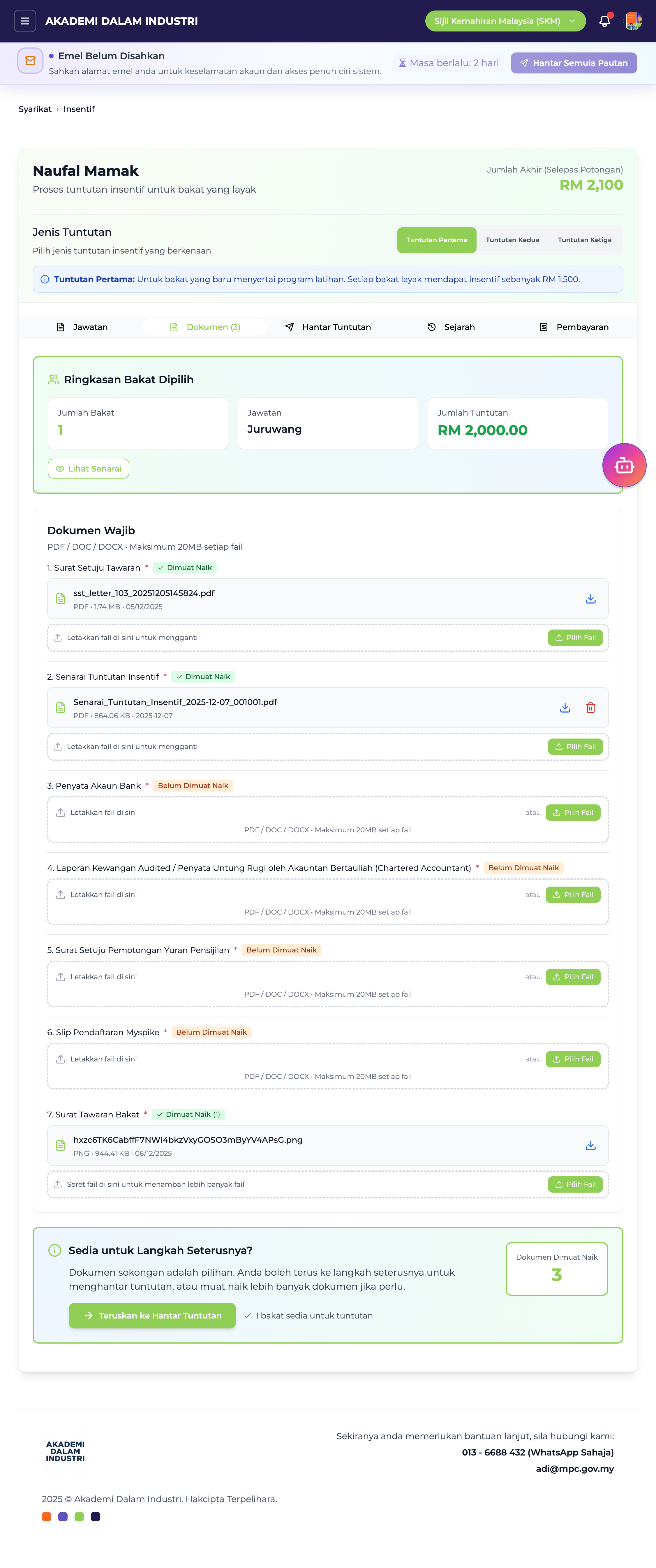 Terdapat 7 jenis dokumen yang perlu dimuat naik.
