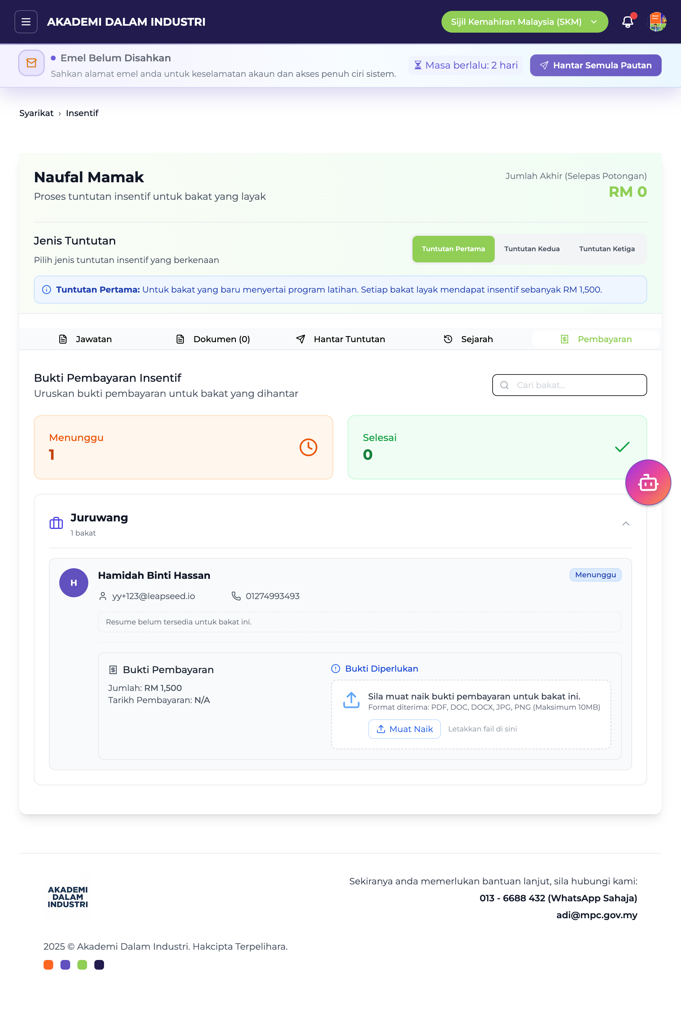 Menunggu – Bukti pembayaran masih belum dimuat naik.